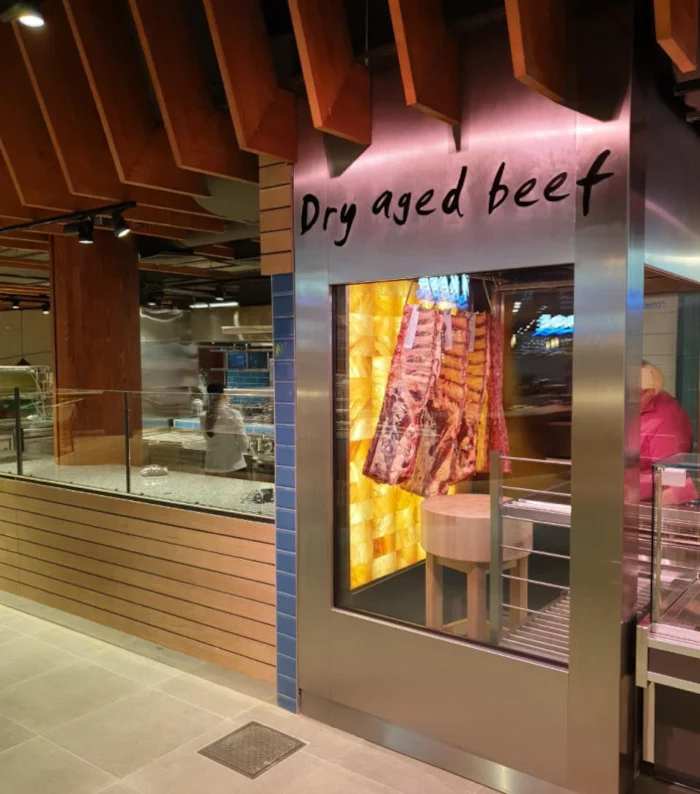 By showcasing the process and products - steaks that you are dry-aging - you entice customers to purchase them, as well as complimentary high margin products like wine and cheese.